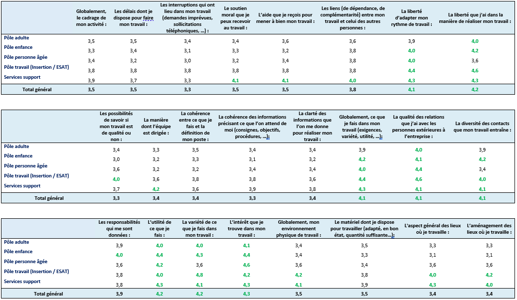 - 9 thématiques traitées : Bientraitance et Ethique, Droits de la personne accompagnée, Expression et participation de la personne, Co-construction et personnalisation du PA, Accompagnement à l’autonomie, Accompagnement à la santé, Continuité et fluidité des parcours, Politique RH et Démarche qualité et gestion des risques.